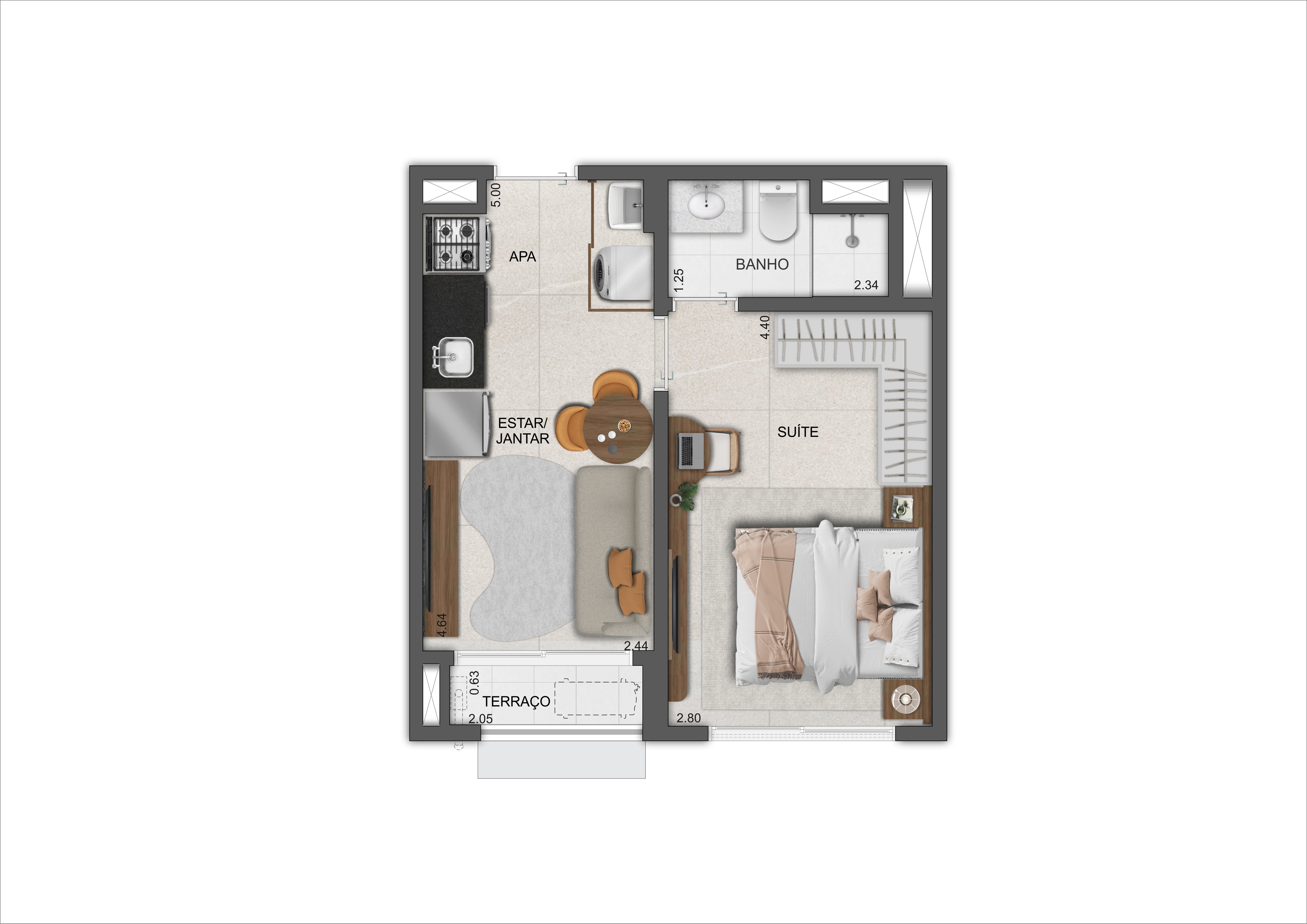 33m² - 1 Dormitório - sem