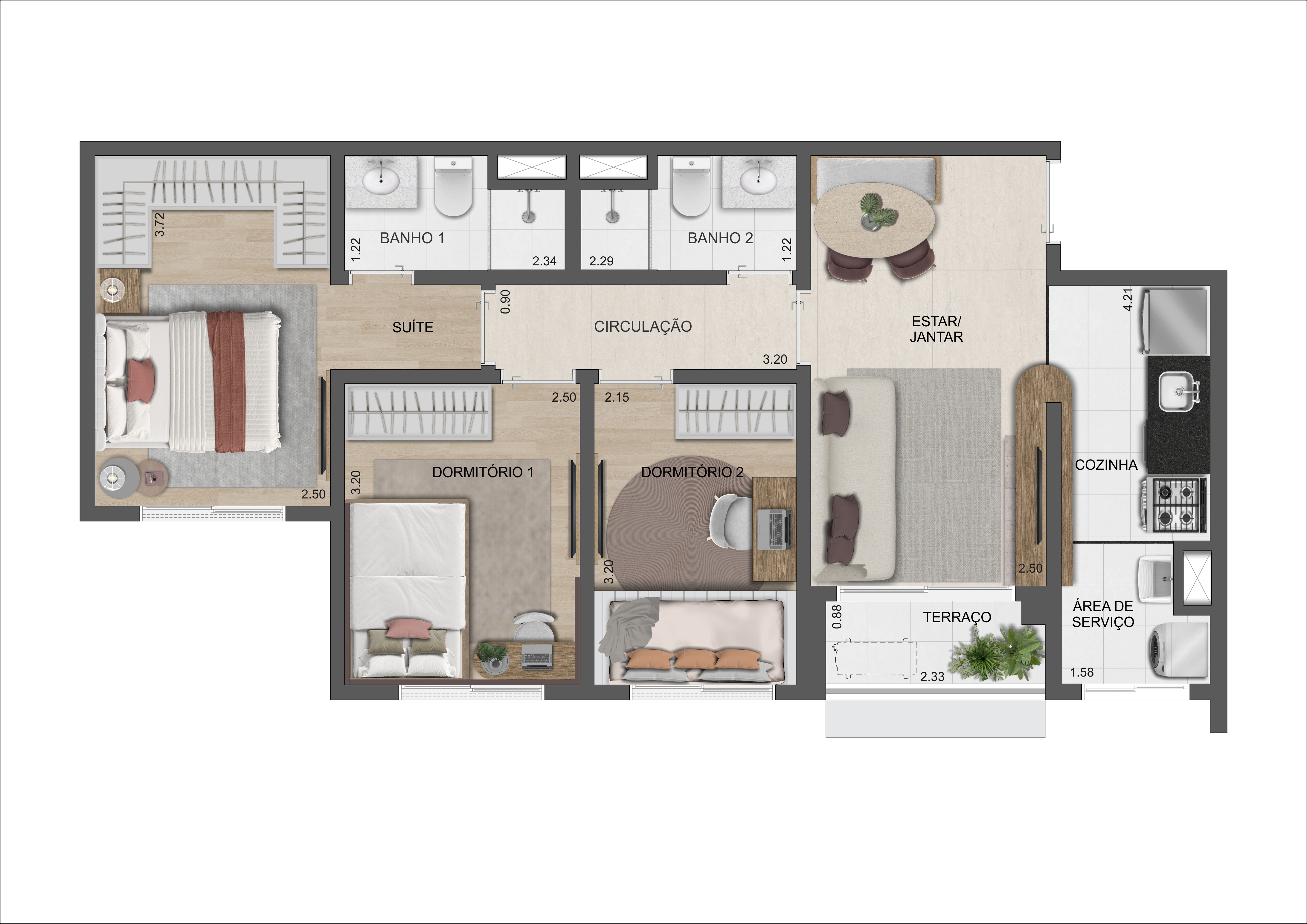 64m² - 3 dormitórios - 1 vaga